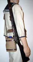 Another partial set, this from Chris Pollendine. Of particular interest is the Mk. I Water bottle carrier, with the Mk. V Water bottle. The Frog carries a Pattern 1888 Bayonet, to fit his CLLE. Uniform notes: The Frock, cloth & Trousers, cloth are of a pattern produced c. 1885 - 1907. The sleeves are ¾ length, the outside pocket holds the issue jack-knife on its lanyard. He wears the early Gaiters described under Associated Equipment. Versions of the Sennet hat - made of woven grass, & named after the particular weave pattern used* - date back to at least Napoleonic times, but had taken on this form by the 1880's. Finally abolished in 1922, officially, although I have read accounts of them being worn twenty years later, this example is from just before WW1. Photos & text © Chris Pollendine 2012.