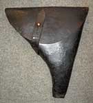 The first example of an early Case, pistol, Mark I is maker marked "Middlemore & Lamplugh Ld, 1912, Birmingham". The Case (which is a very dark brown, rather than black) has no military markings on it, but given that that it came (via his son's widow) from Midshipman Felix John Mossop who served in the RN in WWI, it is more than likely an issue item. His Pouch, cartridge, pistol is illustrated on the Ammunition Carrier page. Midshipman Mossop served on Coastal Motor Boats and was awarded the Belgian Croix de Guerre after Zeebrugge. From the Peter Smith collection. Photographs © Peter Smith 2011.