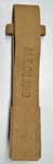 This Water bottle carrier is part of the Pattern 1919 Rifle Equipment. It is similar to the early version of the Pattern 1937 Water Bottle Carrier, with the addition of a short chape and 1-inch buckle on the bottom. This buckle is used to attach the Carrier to the front of the Entrenching tool carrier. The picture at the near left shows the complete assembly with the Bottle, Entrenching tool, and Helve in place. This example is maker marked "M.E. Co." and dated 1927.