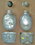 The photo at left shows Bottles with both the early (stainless steel) and late (plastic) Caps. Also note the bit of insulating tape on the Cup at right. This was a common soldiers' mod - to keep from burning your lips with that hot cuppa! Both from the Rog Dennis Collection, photos © Rog Dennis 2009.